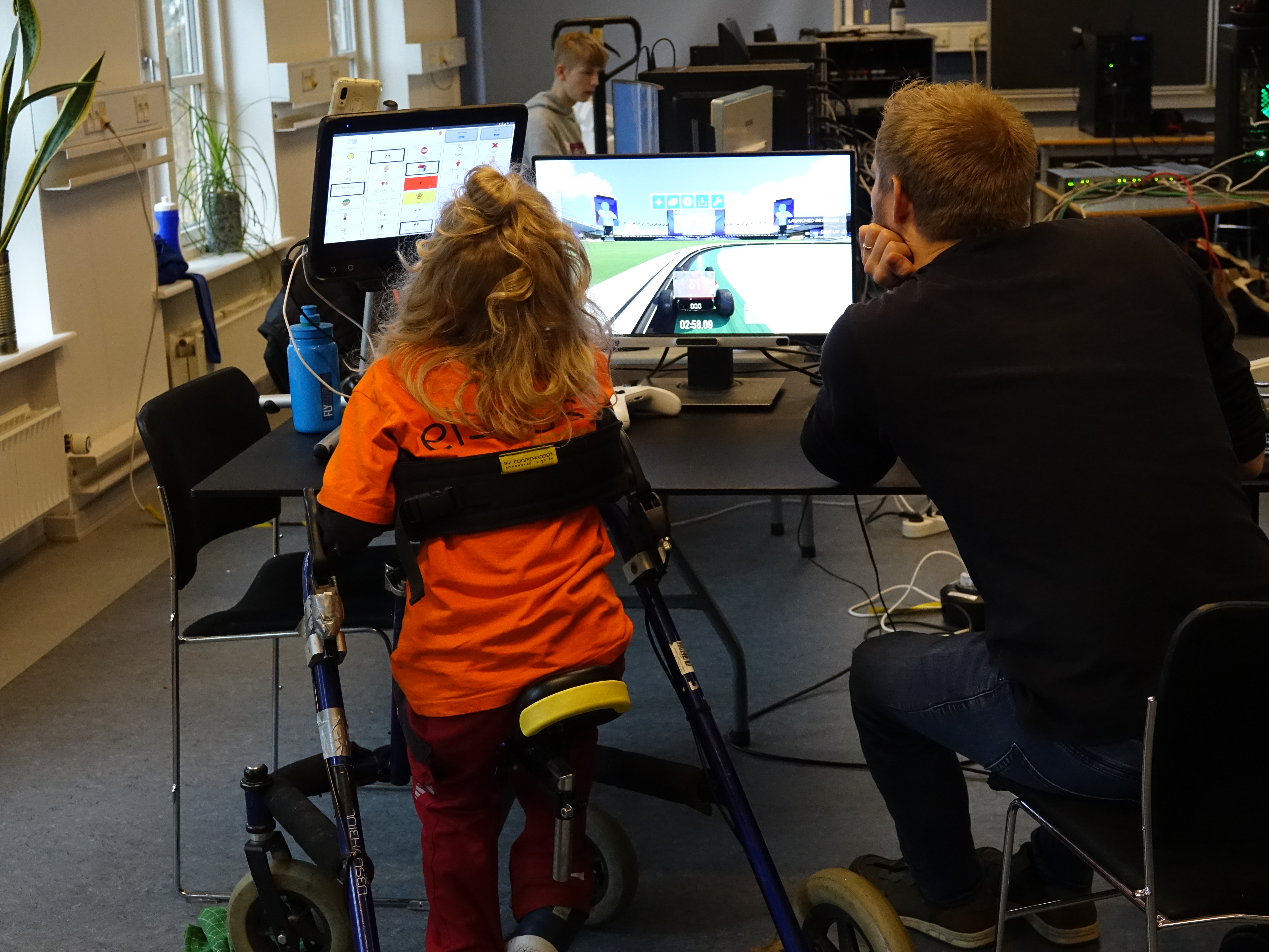 Foreningen Para E-sport Danmark udvikler gaming-løsninger til mennesker med nedsat funktionsniveau. De løsninger bliver brugt i dag. Alf styrer med øjnene og Kristoffer har en mus som tager højde for funktionsnedsættelserne i den venstre arm.